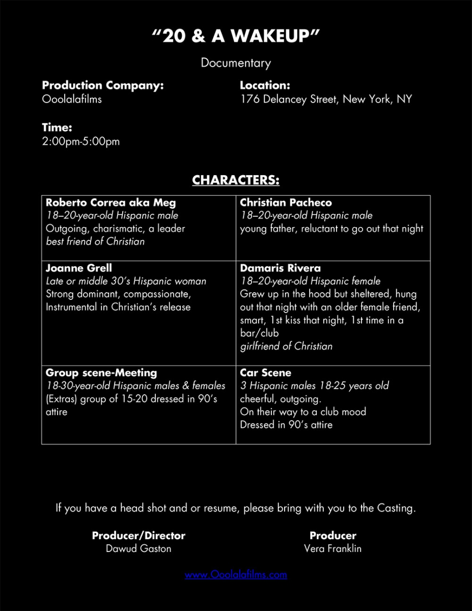 Please bring a headshot & a one minute monologue from your favorite TV show or movie.